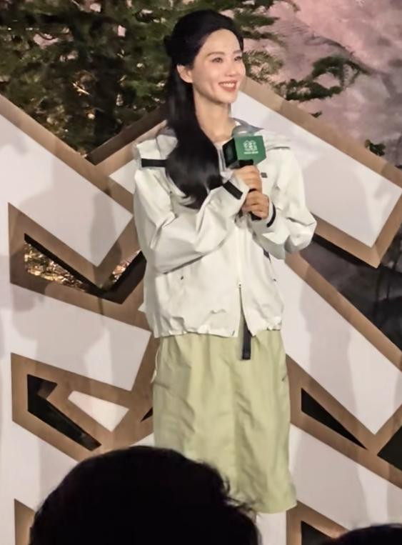 今天参加活动时,刘诗诗的穿搭非常朴素,长袖外套配长裙,非常休闲。