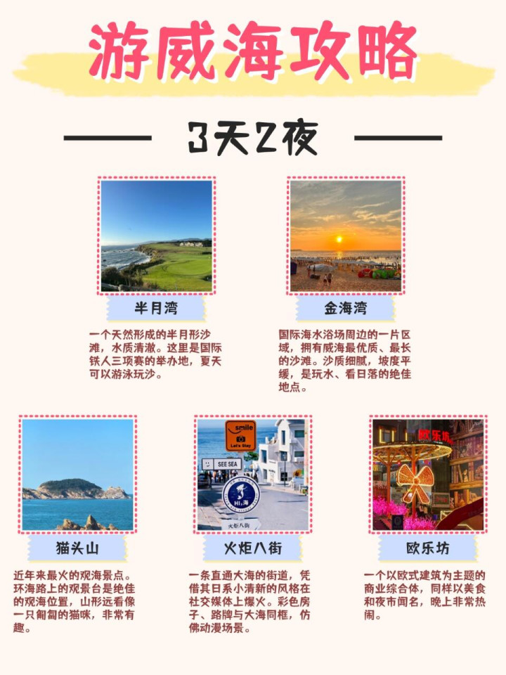 ✔威海景点较为分散,建议租电动车或自驾游玩,环海路停车方便