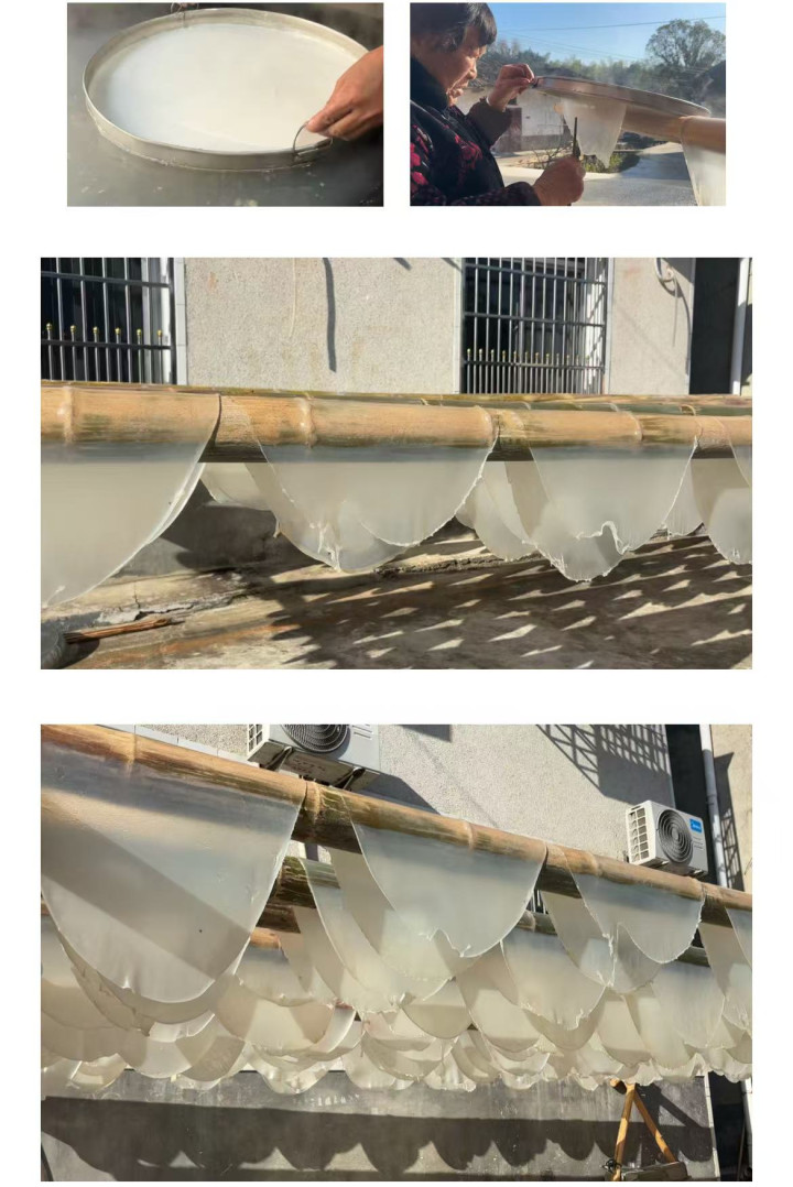 美景之外,张谷英的特色滋味,藏在村民们热腾腾的灶台里。每到秋冬季节,烫绿豆粉皮和红薯粉皮就成了村里的 “主角”。村民们选用自家种的优质绿豆、红薯,手工研磨成细腻粉浆,在烧热的锅上轻轻一舀、一转,一张薄如蝉翼、带着清香的粉皮就成型了。