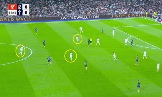 阿隆索的高压战术在各个方向都出现了漏洞,缺乏能量和战术上的稳固性,无法有效抢断对手的球权,特别是在中场和每次进攻的重新启动时。整个防线位置不当,被塞尔塔的移动能力所压制,而这正是皇马自身所欠缺的。