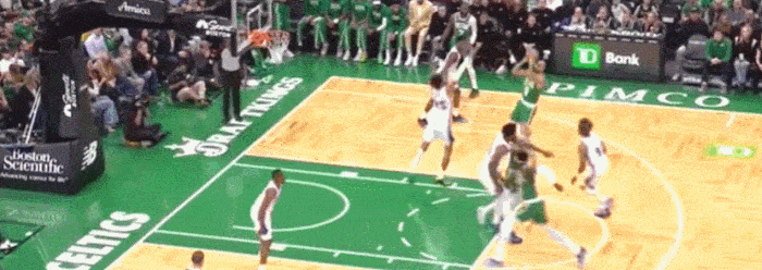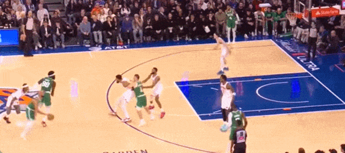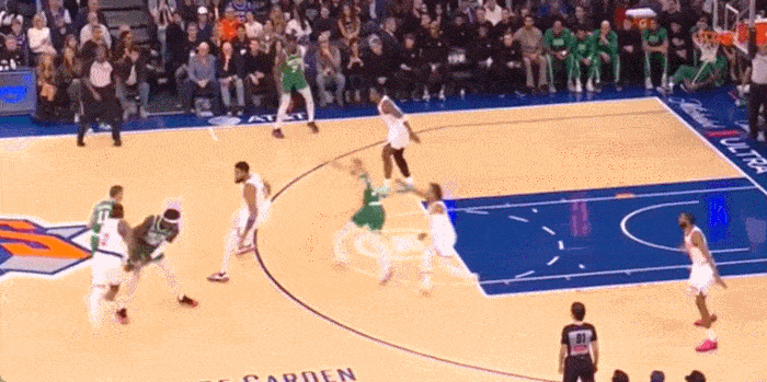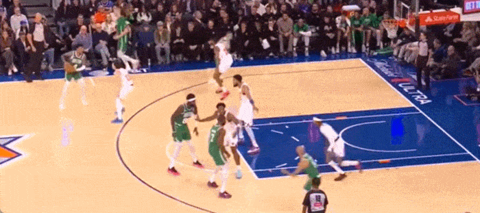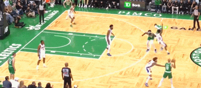 先是克塔为布朗设置“flare screen" 埃奇库姆跟的很紧 并没有跑出空位