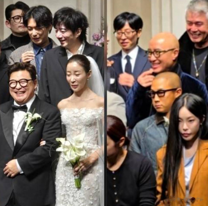 3. 宾客阵容豪华到离谱:刘在石、姜虎东、金九拉几位综艺顶流同时出现在同一场婚礼,这可能十年都不会再发生一次。